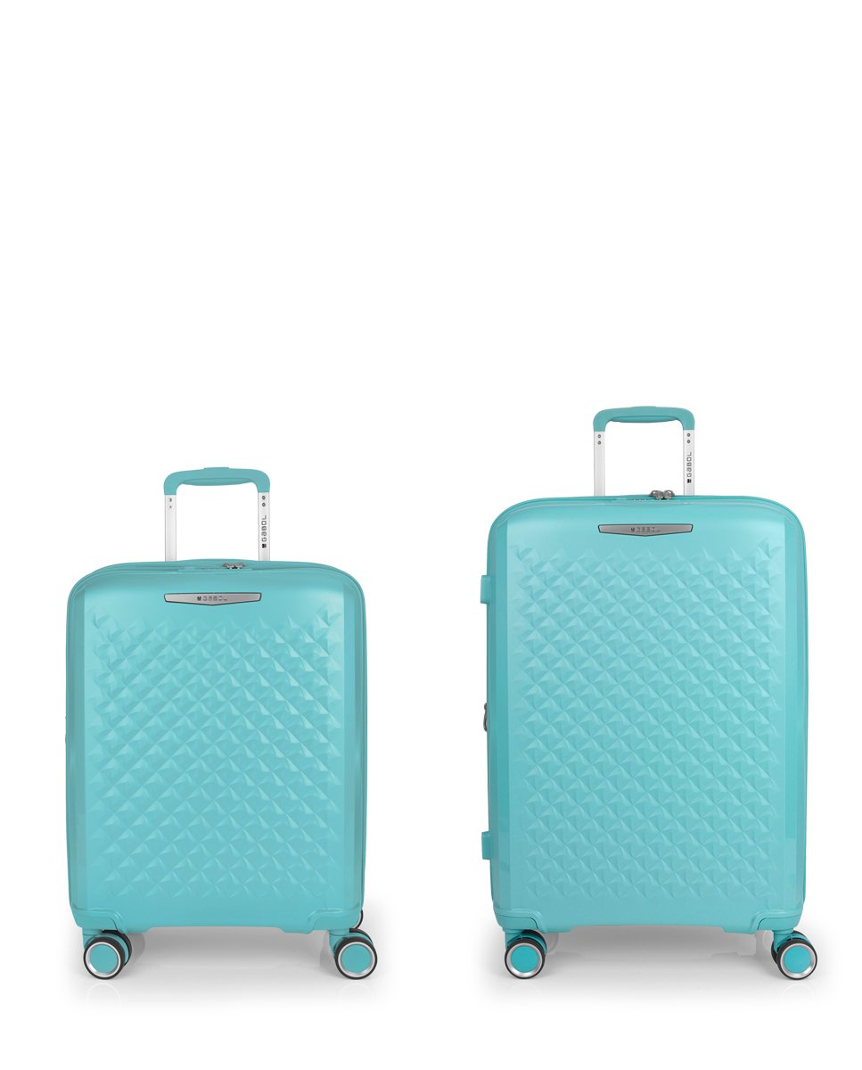 Juego de 2 maletas (Cabina y Mediana) rígidas, expandibles y 4 ruedas dobles multidirección.Fabricadas en polipropileno. Su interior está compuesto por un forro de material reciclado de alta calidad con doble separador y bolsillo. Cerradura TSA. Medidas sin y con expandible: Maleta Cabina: 40x54x22/25 cm – Peso: 2,8 kg – Capacidad: 42,1/47,9 L. Maleta Mediana: 44×64,5×28/31 cm – Peso: 3,3 kg – Capacidad: 72,5/80,2 L.