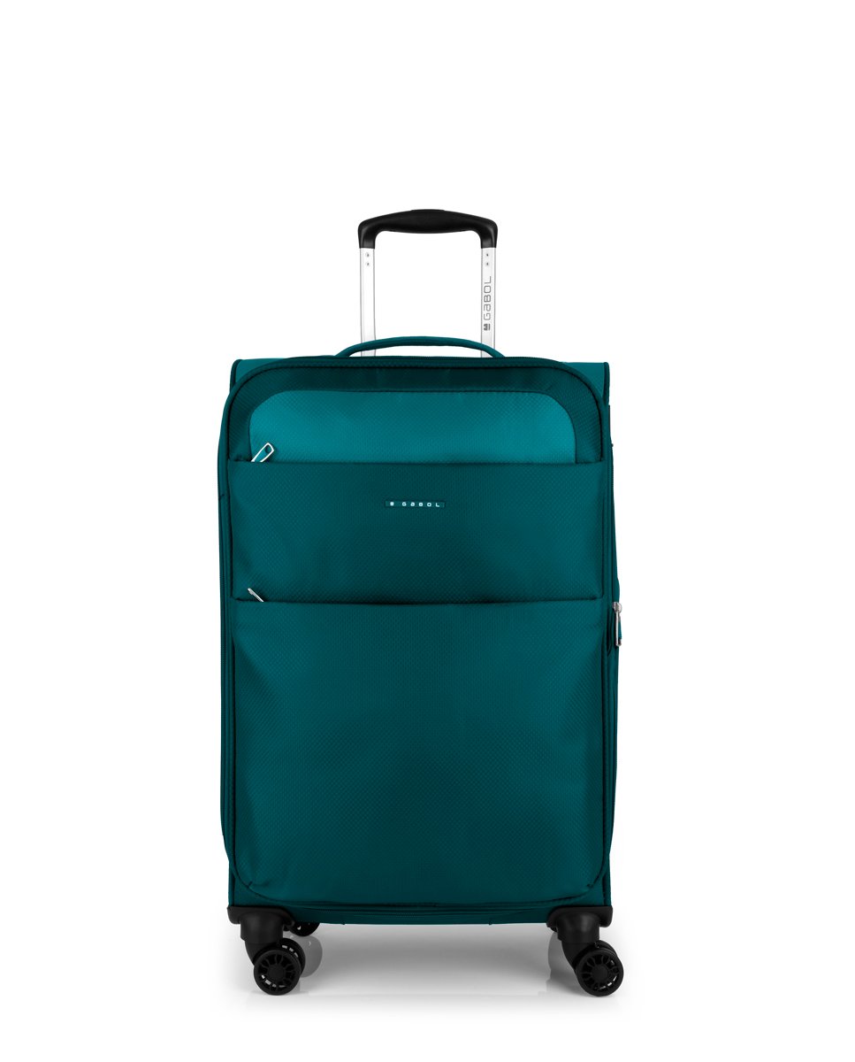 Maleta de tamaño mediana Gabol blanda, con 4 ruedas dobles.El material de fabricación es poliéster y su interior está compuesto por un forro de alta calidad y separador interior. Puede hacerse expandible para una mayor capacidad y peso ligero. Cerradura TSA. Medidas Maleta: 69x42x26 cm – Peso: 2,7 kg.