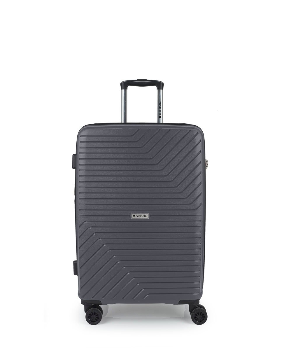 Maleta expandible tamaño de mediana Gabol rígida con 4 ruedas dobles.El material de fabricación es polipropileno y su interior está compuesto por un forro de alta calidad con doble separador interior con bolsillos. Incluye cremalleras antirrobo que garantizan más seguridad que una convencional ante intentos de hurto. Cerradura TSA. Medidas sin/con expandible: Medidas Maleta Mediana: 67x44x2730 cm – Peso: 4 Kg.